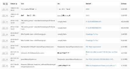 Der Rest wird vom System als Viren, Trojaner oder andere Malware erkannt und damit in die Quarantäne verschoben. Über unser AntiSpam-Webseite können Sie diese einsehen, und - falls Sie das wirklich wollen - trotzdem zustellen lassen.
